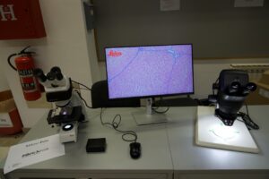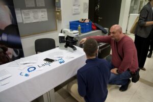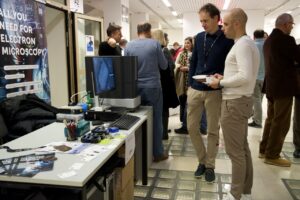 Sudionici su zatim imali priliku obići mikroskope na PMF-u, među kojima je posebno istaknut novoinstalirani mikroskop atomskih sila (AFM) te TEM Morgagni, koji već dugi niz godina ima važnu ulogu u istraživanjima, diplomskim i doktorskim radovima te brojnim znanstvenim publikacijama. Nakon obilaska uslijedilo je razgledavanje postera uz kavu i kolače, što je ujedno bila prilika za neformalno druženje i razmjenu iskustava među članovima.